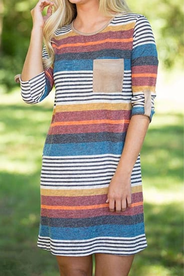 Order the Women’s Stripes Round Neck Contrast Waist Pockets Mini Dress Here.