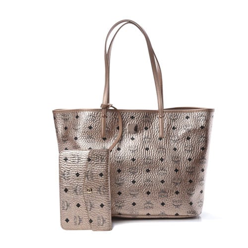 Order the MCM Metallic Visetos Medium Anya Shopper Tote Champagne Gold Here.
